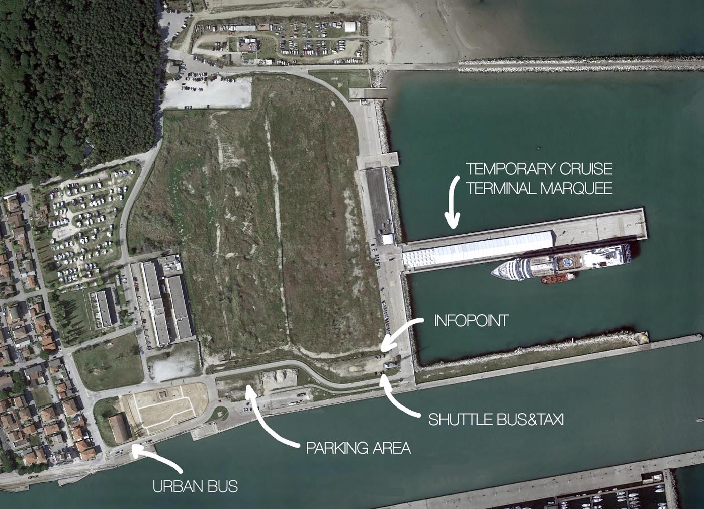 A temporary marquee is presently used as cruise terminal. Construction works of the new terminal building will kick-off soon and it will offer a wide range of services.