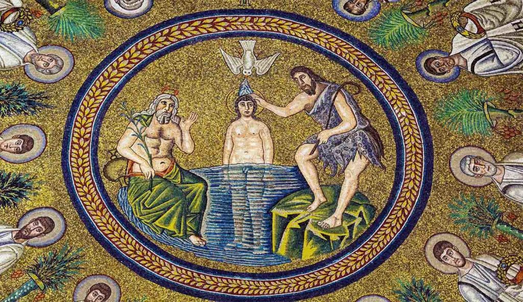 Questo battistero fu eretto durante il regno di Teodorico, quando Ravenna era la capitale dell’impero e l’arianesimo era la religione ufficiale della corte. A causa di questa dottrina eretica, l’iconografia