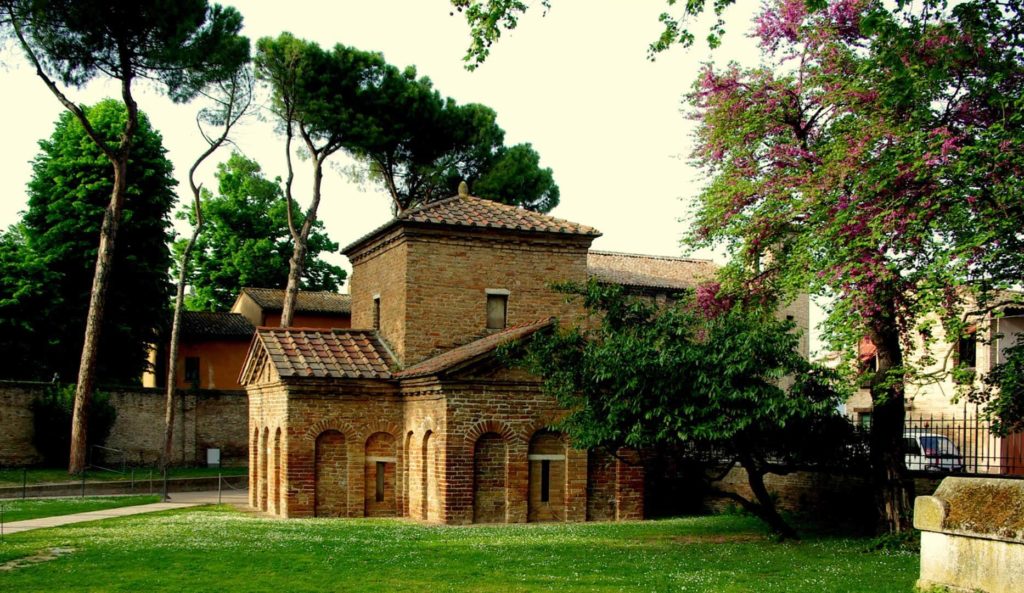 Il mausoleo fu eretto nella metà del quinto secolo dall’imperatore Onorio – che aveva trasferito la capitale dell’Impero occidentale da Milano a Ravenna – per sua sorella Galla Placidia. I